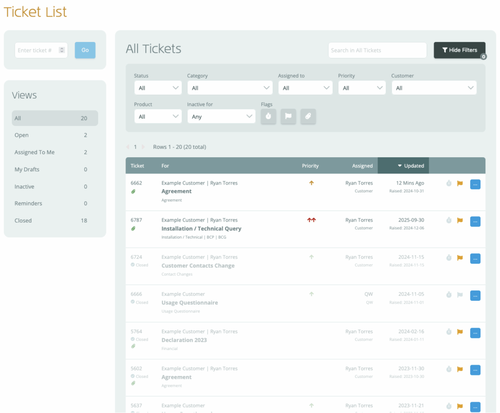 You can raise tickets with us via the SupportCentre for any of the following matters: