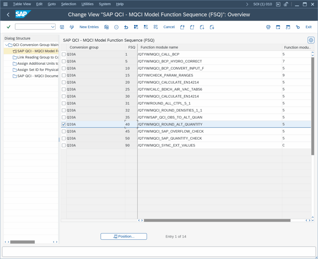 All QuantityWare MQCI template conversion groups are configured such that the MQCI function module sequence contains function