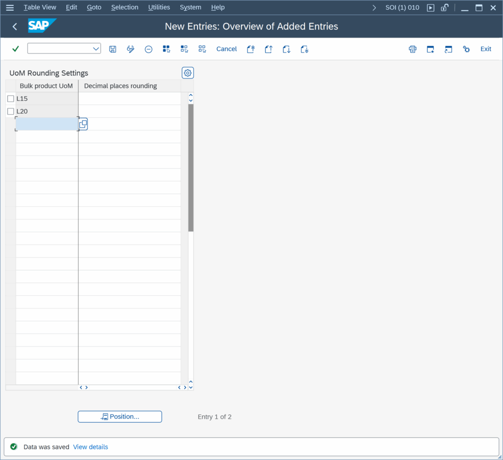 I have set my quantity value UoM L15 and L20 to be rounded to zero decimals, but it is not working. What can I do?