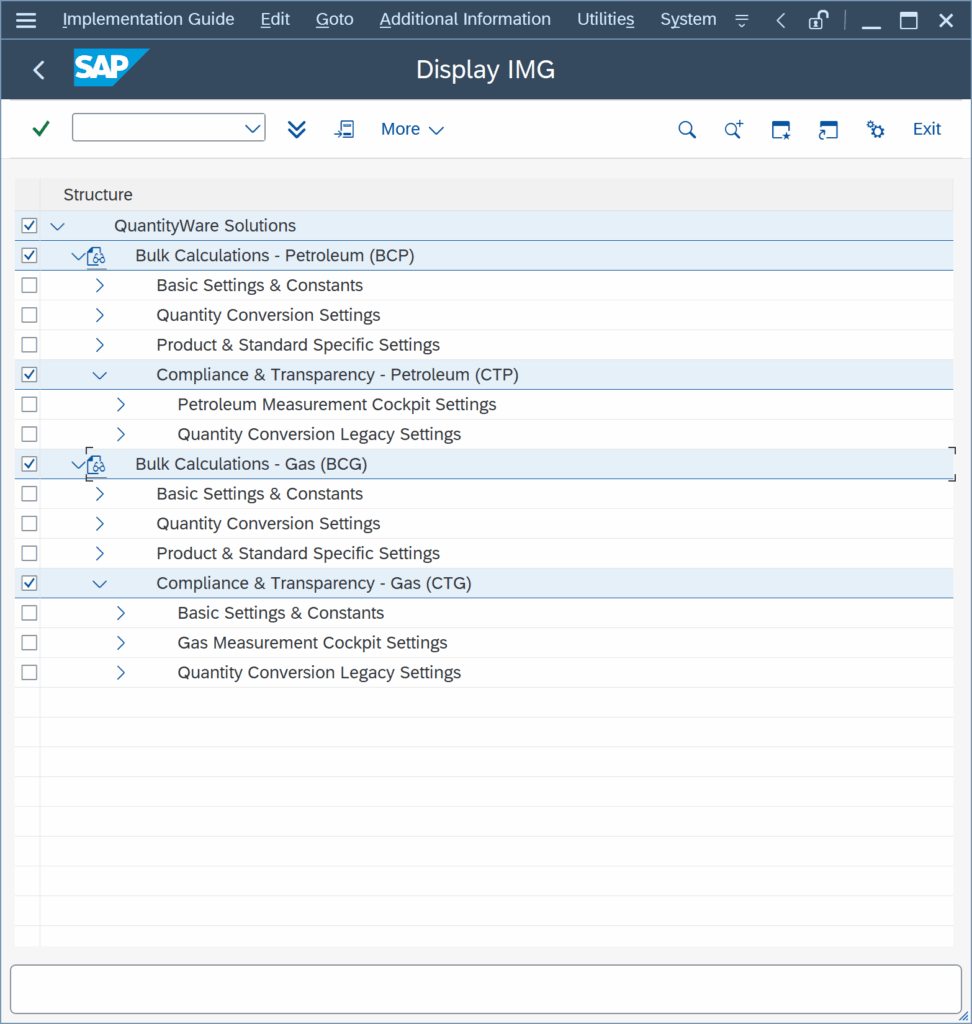 In your client 045 (development system), you execute the QuantityWare BCS installation test via the Petroleum and/or Gas Measurement Cockpit (PMC / GMC).